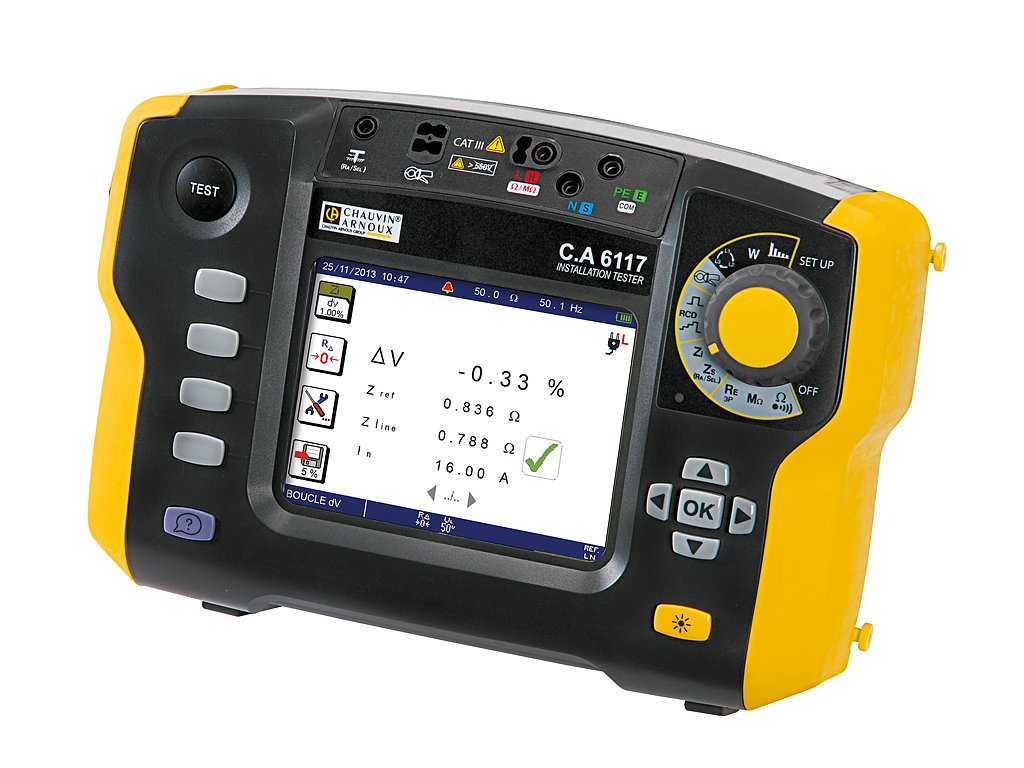 C.A 6117 nabízí 17 funkcí pro elektrické zkoušení instalace, provádí se podle národních a mezinárodních norem (IEC 60364-6, NF C 15-100, VDE 100, XP C 16-600, atd). To kombinuje design, ergonomii, jednoduchost, vysoký výkon, rychlost a přesnost.