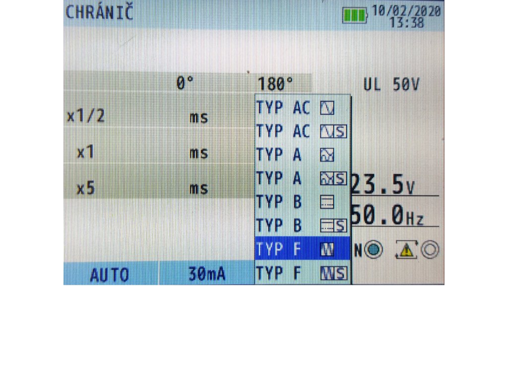 - ATT: Anti-Trip Technology ( 2 a 3vodičové měření) zajišťuje nevybavení proudového chrániče při testu vypínací smyčky L-PE. Pouze 2vodičově testovaná - velmi užitečné v případě, že není neutrální vodič (tj. 3-fázové vedení motoru)
