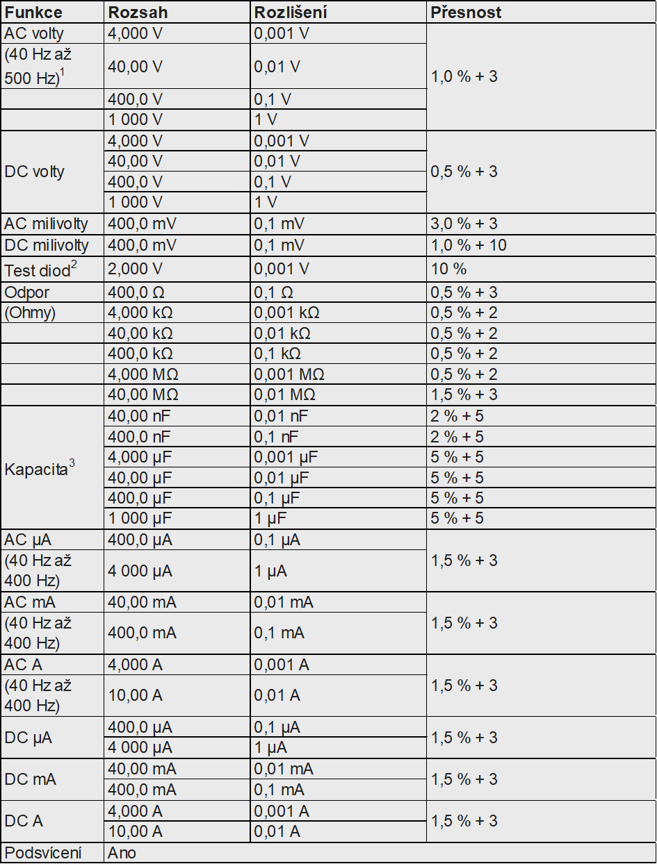 - Měření střídavého a stejnosměrného napětí až do 1 000 V