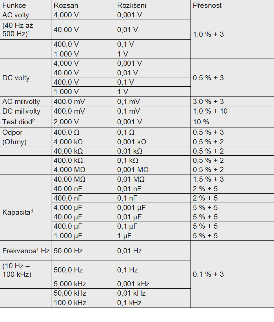 - Měřeni střidaveho a stejnosměrneho napěti až do 1 000 V