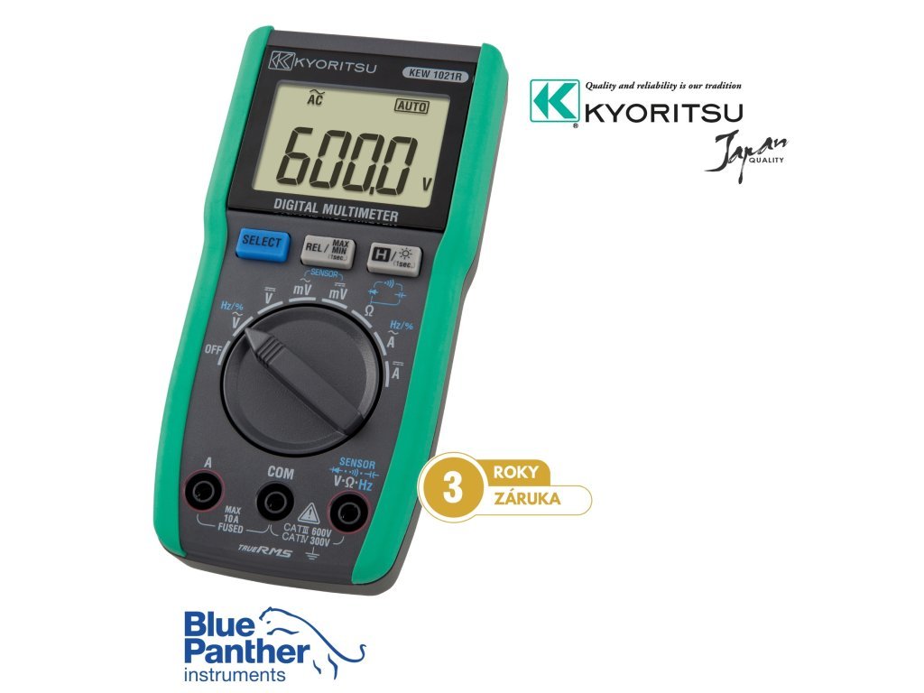 Kyoritsu KEW 1021R je digitální multimetr pro údržbu v průmyslu s funkcí pro měření skutečné efektivní hodnoty (TRMS), který kromě napětí a proudů, měří též odpor, kapacitu, frekvenci a střídu. Samozřejmostí je kontrola spojitosti a test diod.